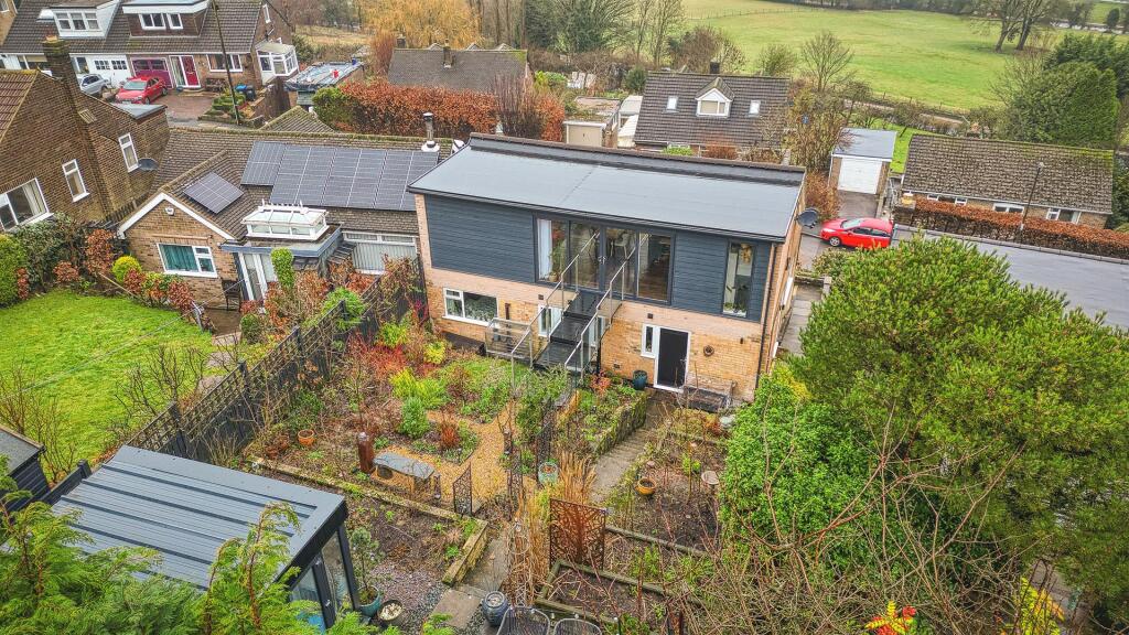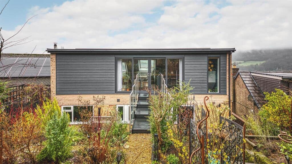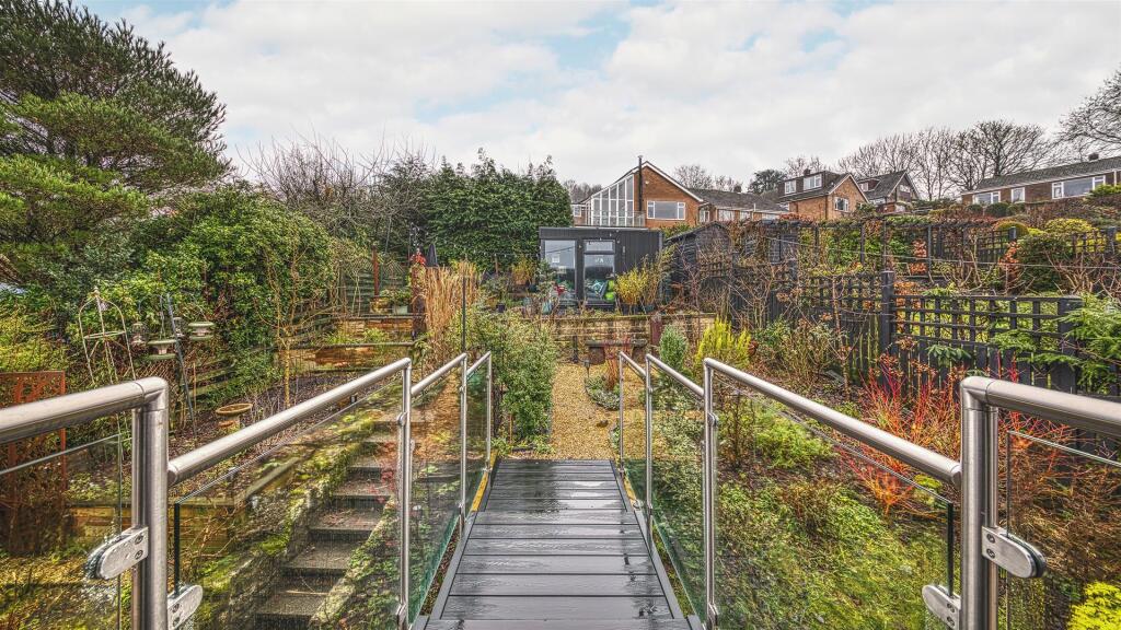 Extensive remodelling to the Ground Floor layout as well as dramatic new living area to the First Floor, complete with new steel and glass bridge offering easy access to the terraced rear garden brought this tired old bungalow right up to date